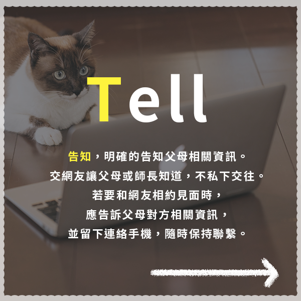 ✏️Tell: 告知你信任的家長師長,也記得跟他們說網友的基本資料喔!